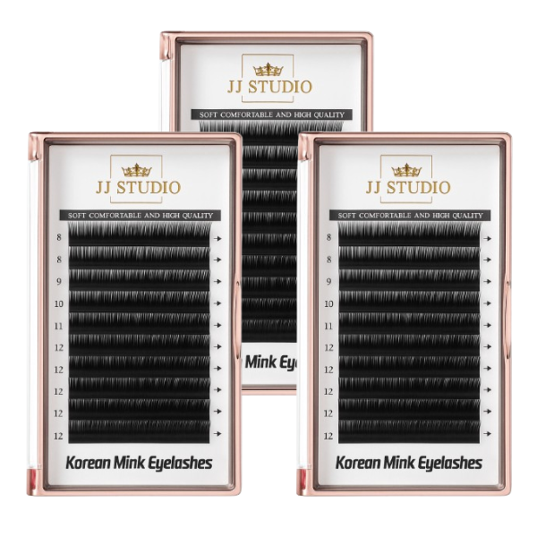 Unser exklusives JJ STUDIO L-Curl Wimpernset enthält drei Längen – 13 mm, 14 mm und 15 mm – jeweils mit einer feinen Stärke von 0,07 mm.